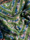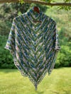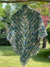 The Afternoon With Monët Shawl is a triangular shaped shawl made of fingering weight yarn, making it lightweight and giving it a soft drape. Great for cool summer nights, cold indoor climates, or beachside as a cover up.